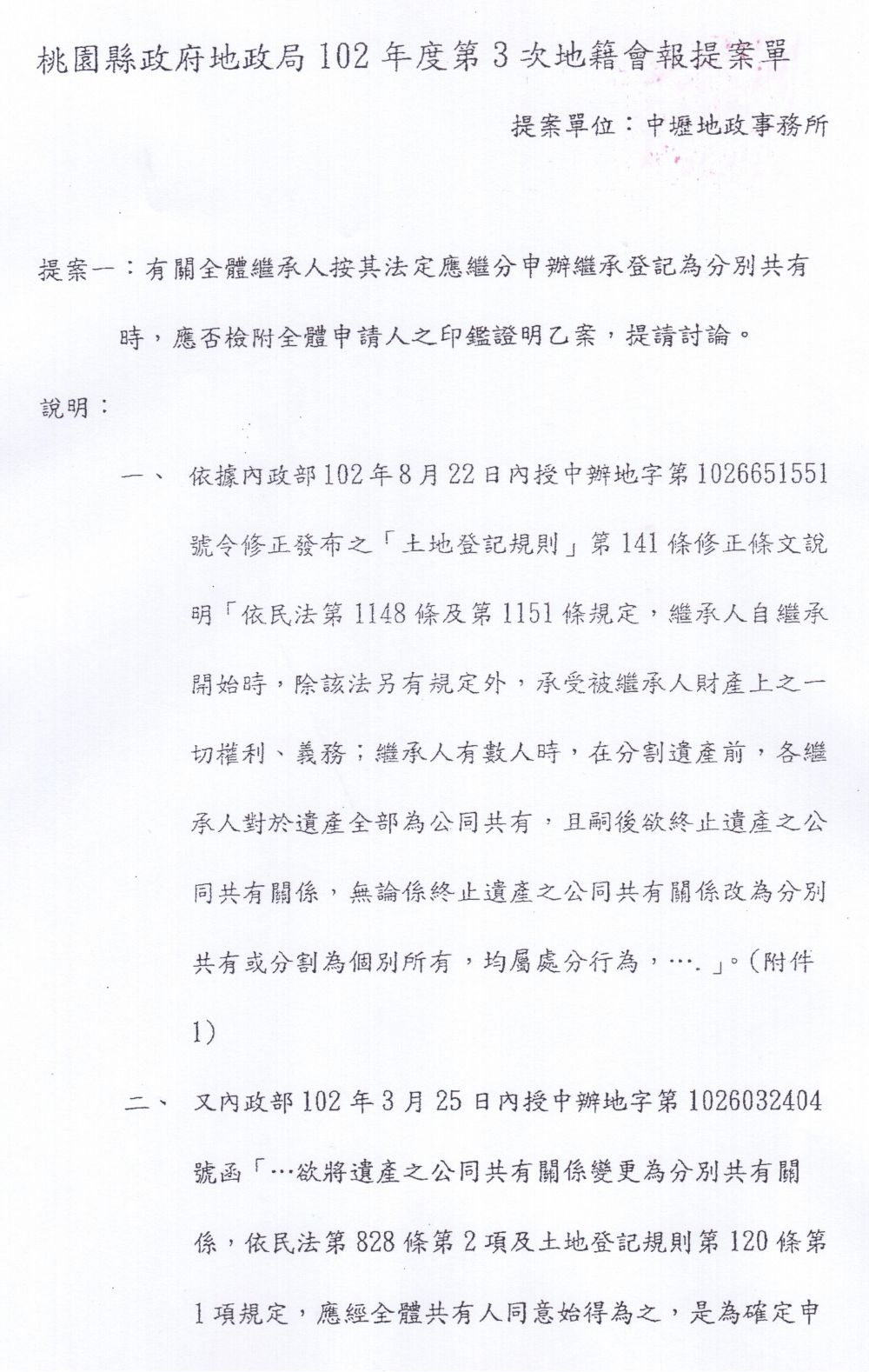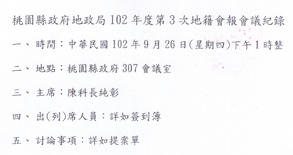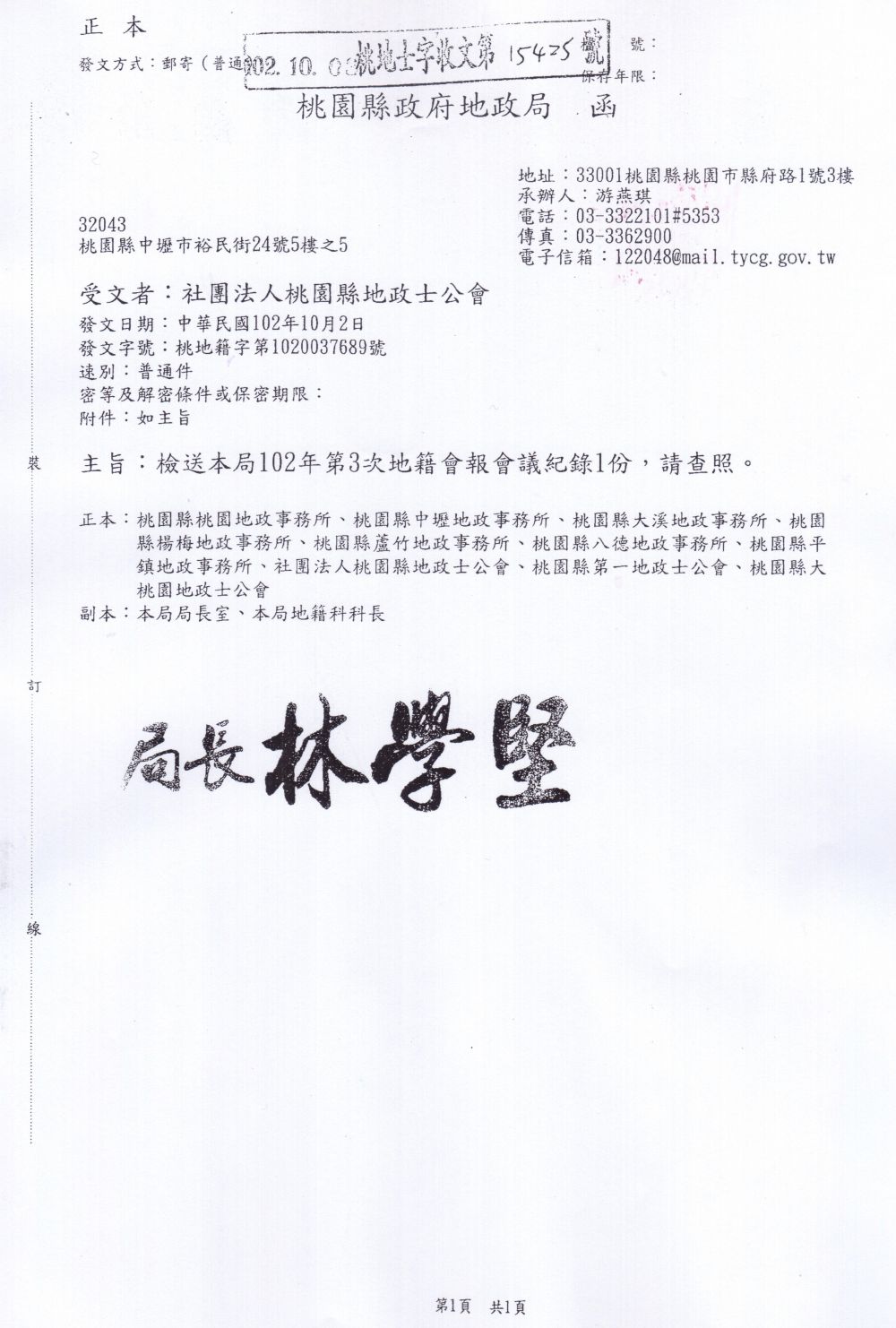 桃園縣政府地政局102年度第3次地籍會報會議紀錄