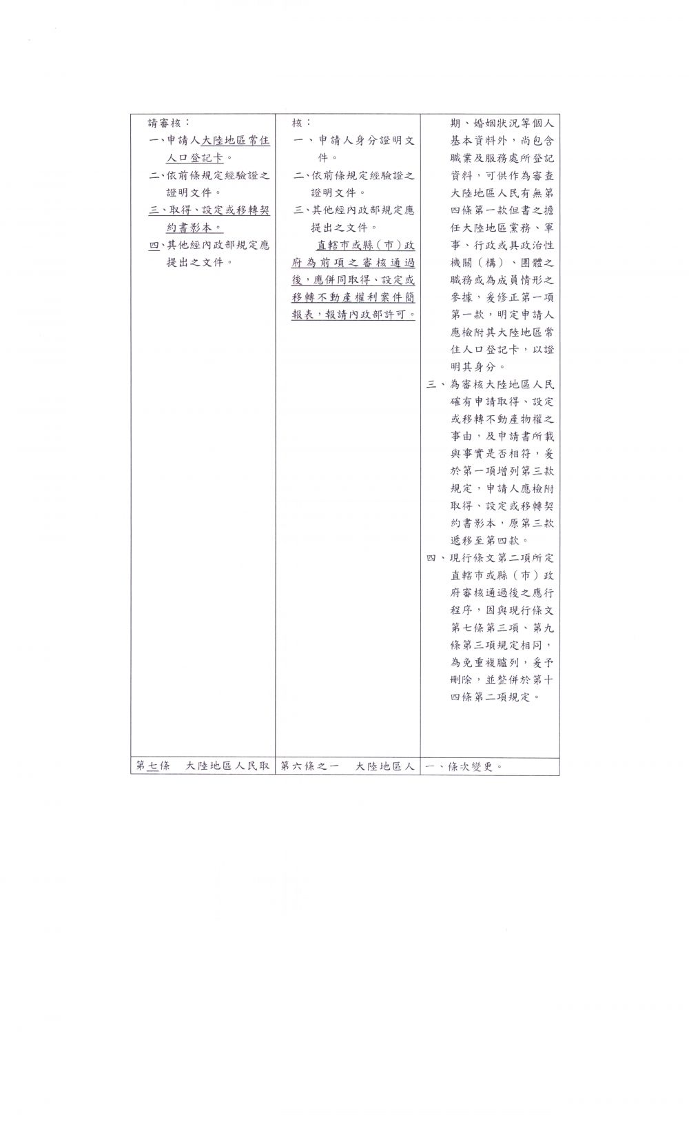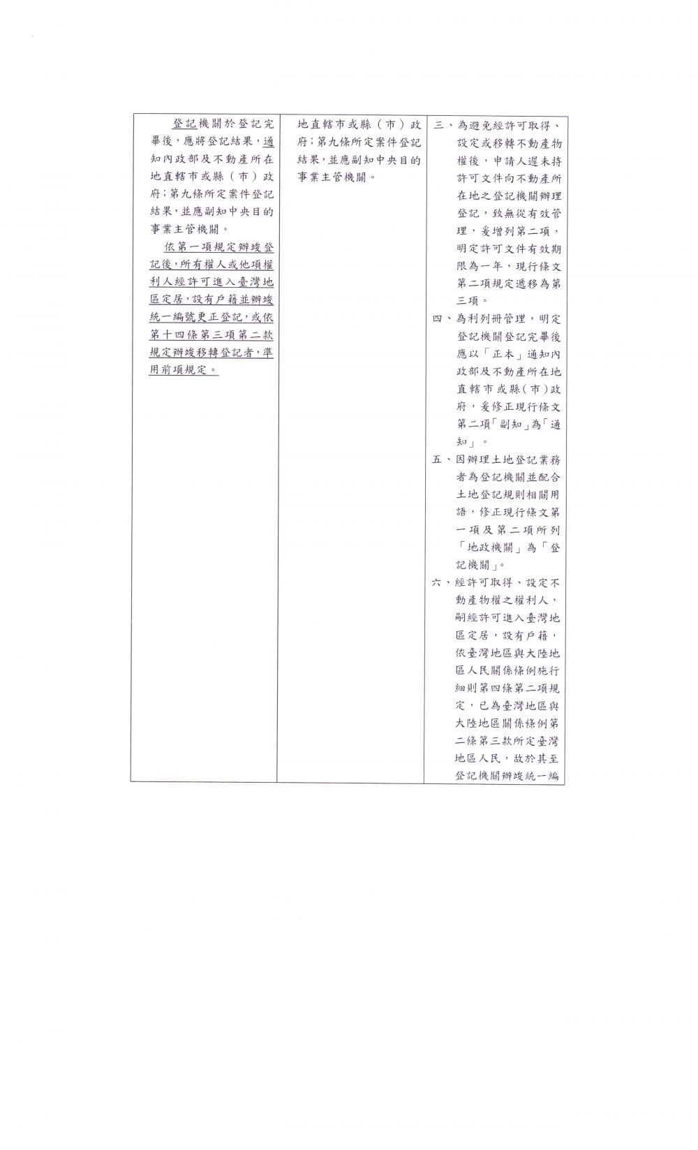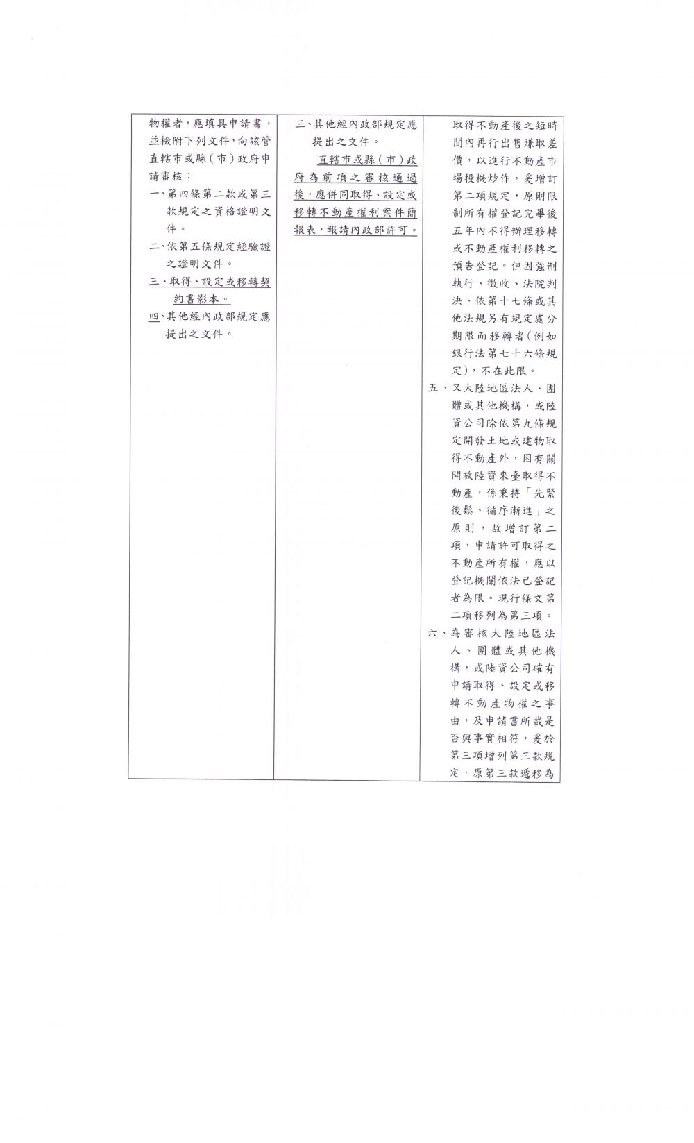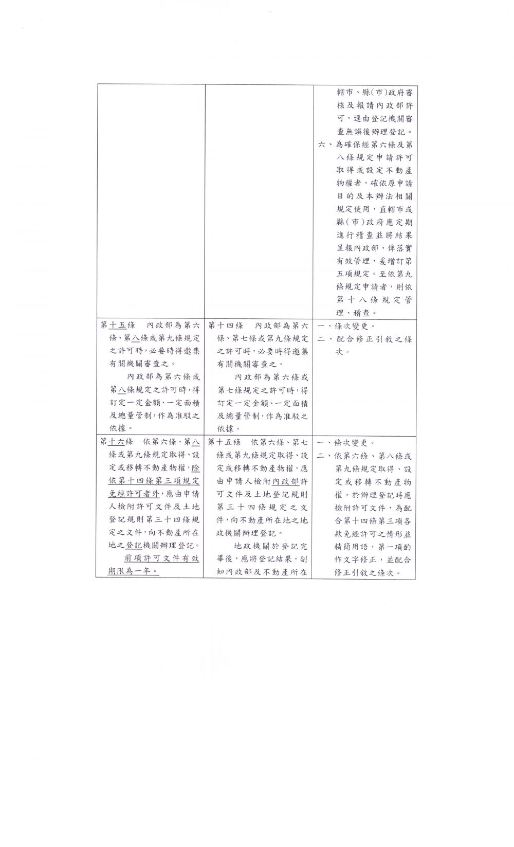 六、規定申請取得、設定或移轉不動產物權應附文件不符或不全之處理方式、案件應報請內政部許可、免申請直轄市或縣(市)政府審核及免報請內政部許可之情形及已取得或設定不動產物權後之稽查管理機制。(修正條文第十四條)