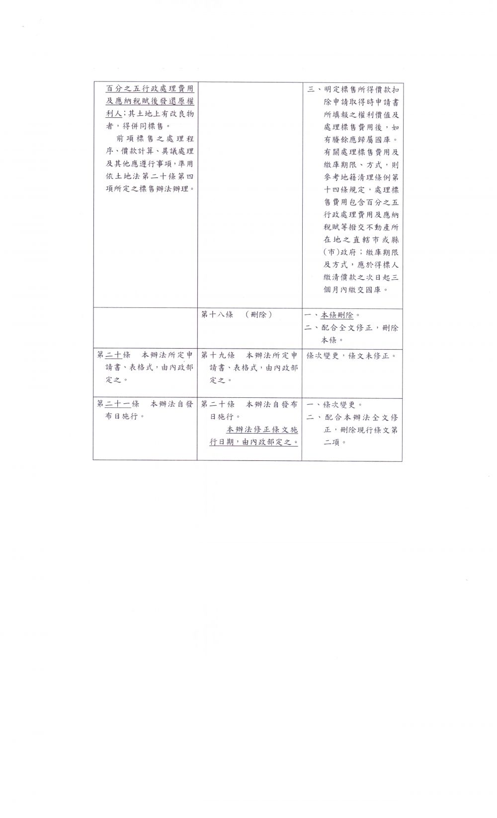 十、修正因違反第十七條第一項或第十八條第二項於期限內移轉不動產之規定而辦理逕行標售時,標售所得價款高於或低於申請取得不動產物權時所填報權利價值之處理方式。(修正條文第十九條)