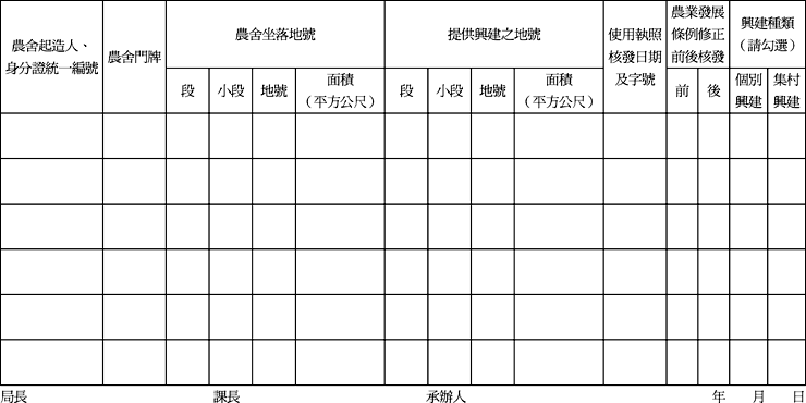 市 縣(市) 鄉(鎮、市、區)農舍管制註記清冊