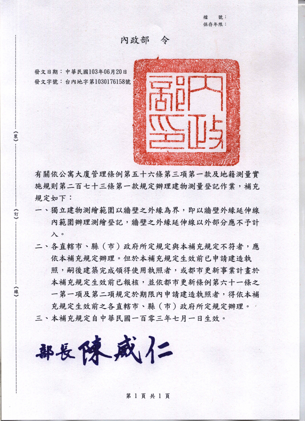 台內地字第1030176158號令